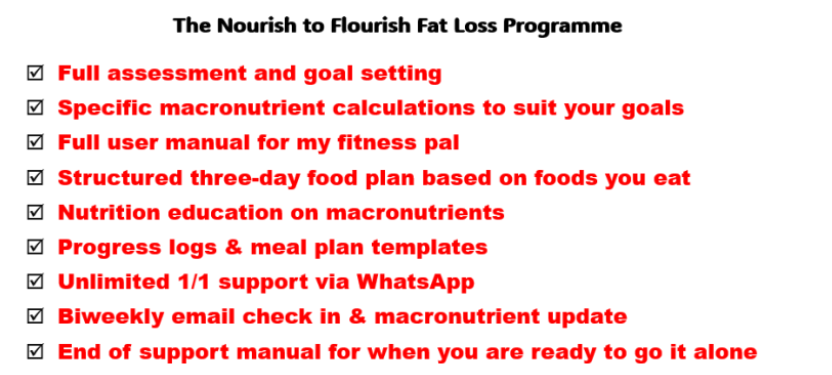 The Nourish to Flourish Fat Loss Program Nutrition Only Program For Further information and pricing email: formulatingfitness@gmail.com